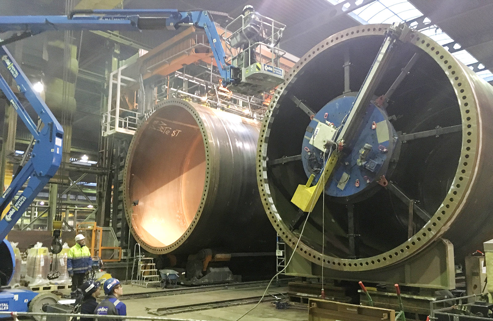 Adaptable to any given diameter Flange facing Turning of RTJ joints Range: Dia. till min. 6 m Flatness tolerance: 0,25 mm ( dia. 6m )